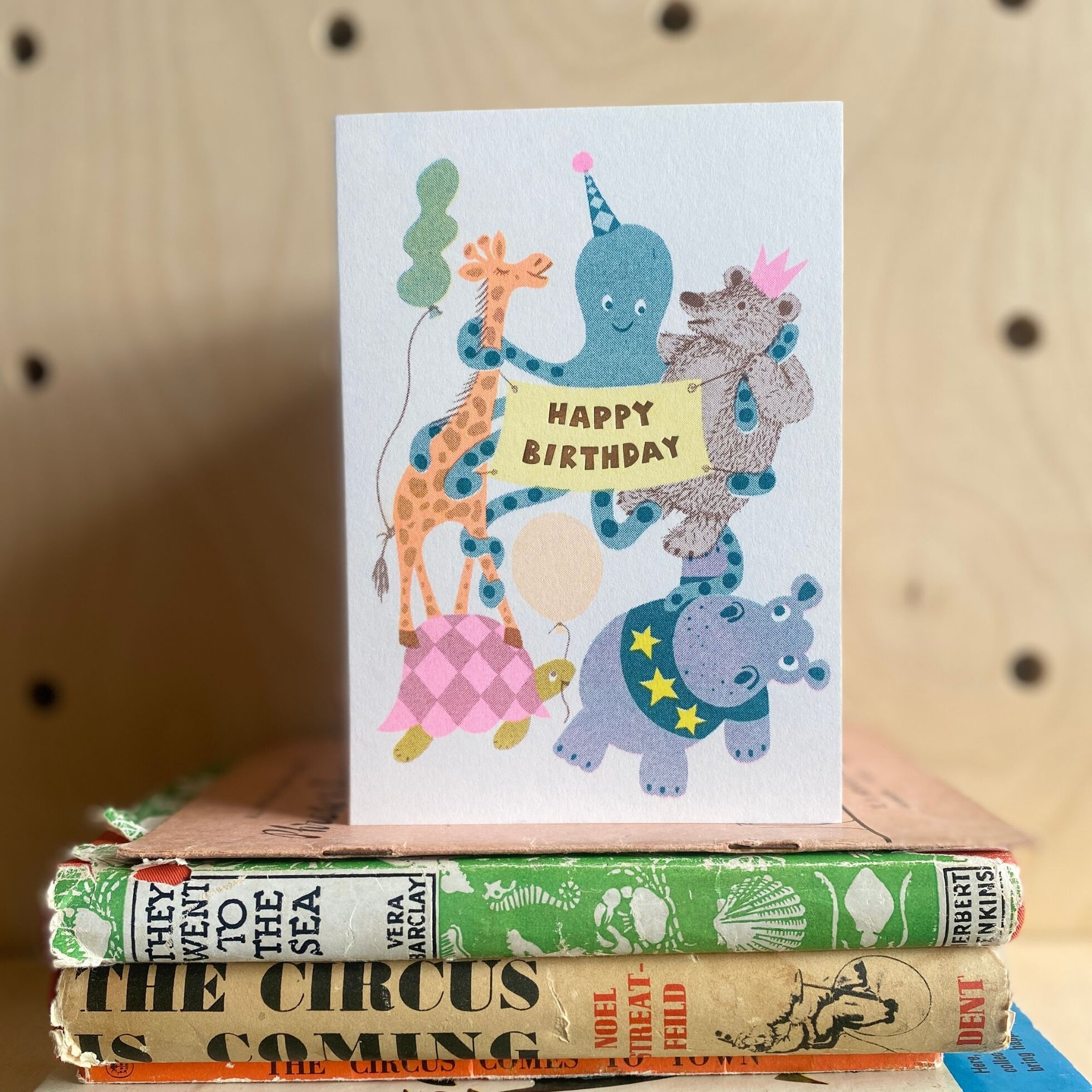 Embellished with a foiled happy birthday. Each card is a unique Riso print using soy based inks. Please note the fluorescent colours do not show up well in photography. Blank inside for your own message. 105mm x 150mm - PACK OF 6