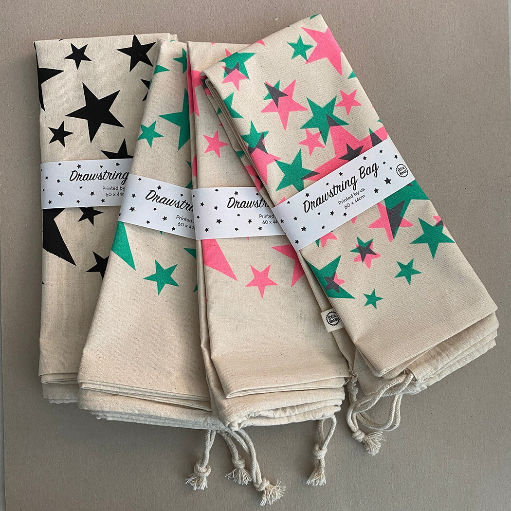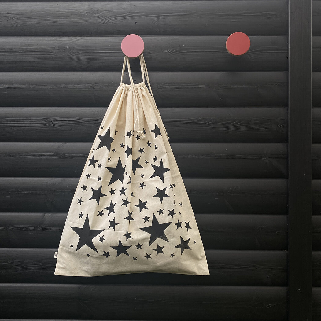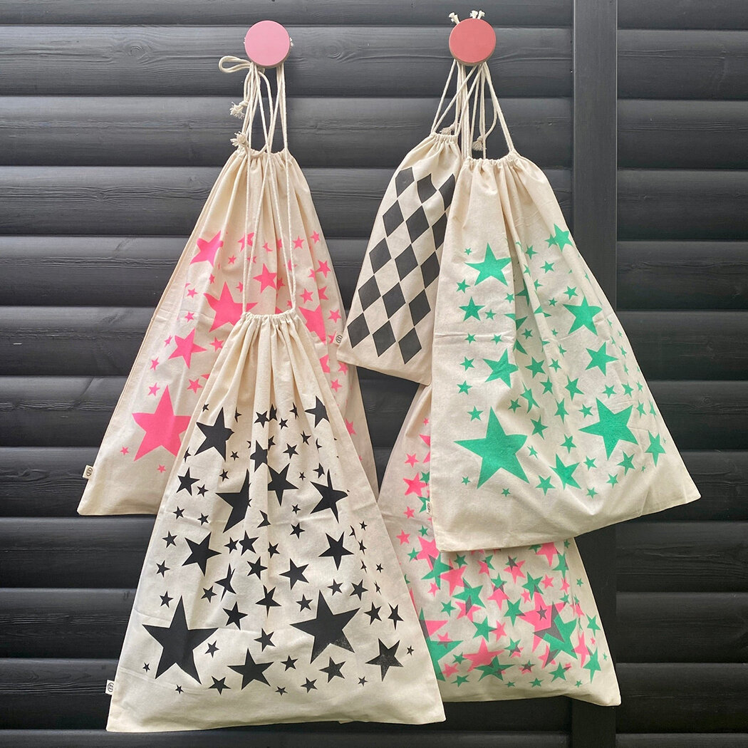 A handy bag for Christmas gifting that can then be used all year round for laundry, toys, shoes etc. Printed by us here in our Norwich studio, each bag will be unique!