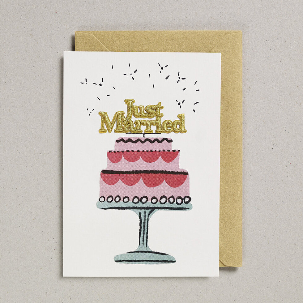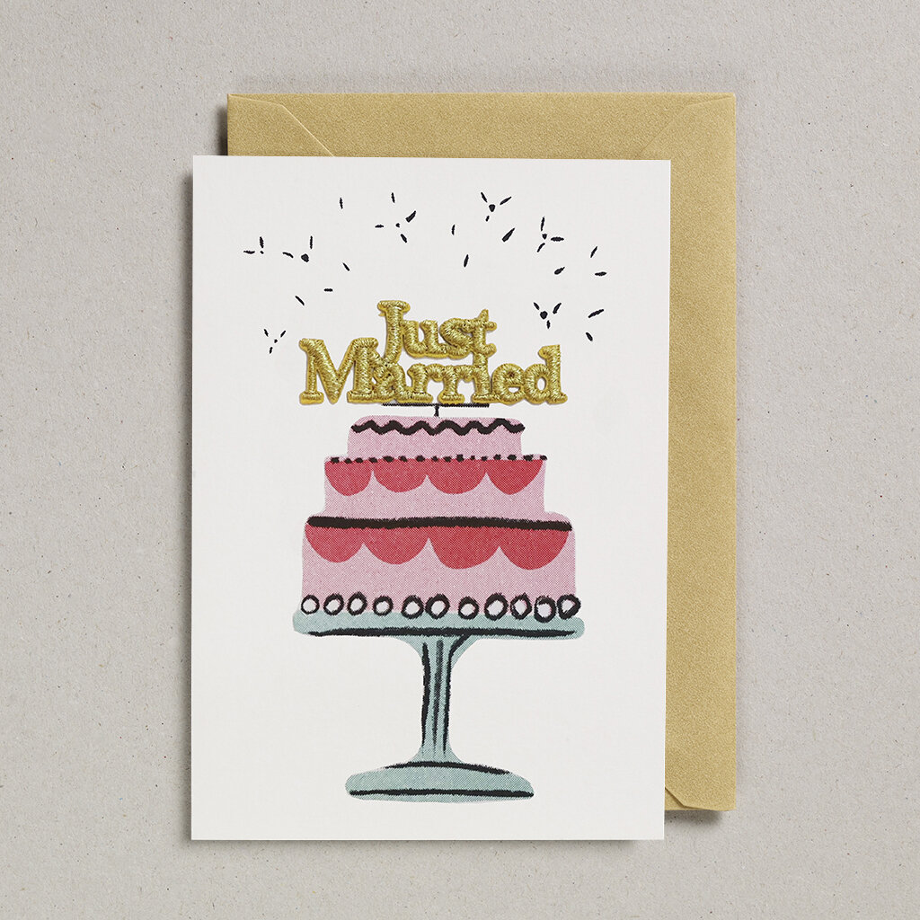 Cake Cards (Pack of 6) - Just Married Embroidered Word Greeting Cards, Wedding, Cake Greeting Cards, Valentines, Love & Marriage Greeting Cards