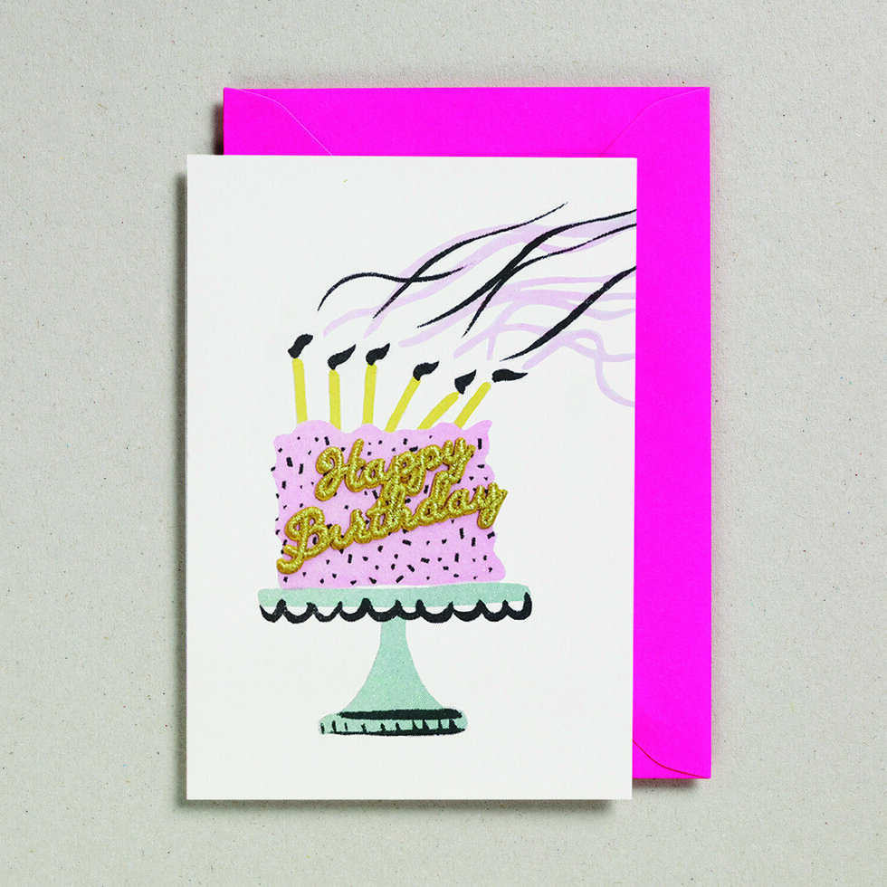 Cake Cards (Pack of 6) - Happy Birthday Embroidered Word Greeting Cards, Cake Greeting Cards